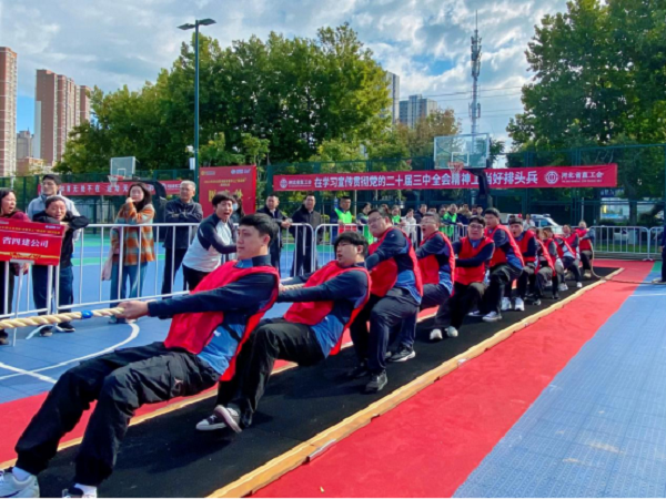 “加油,加油……”随着一阵阵此起彼伏的呐喊,省直工会组织的“移动杯”拔河比赛于10月21日在石家庄高铁片区中央绿色体育公园正式开赛,公司工会选拔出14名身强力壮的职工组队参加了比赛,在54支参赛队伍中夺得第八名的好成绩。